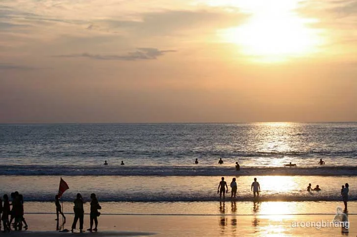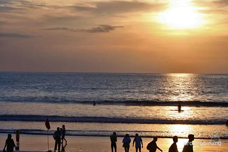 Ada sebuah bendera peringatan yang ditancapkan di tepian Pantai Kuta. Peringatan yang dibuat untuk sering tidak diindahkan oleh para pengunjung, sampai terjadi petaka, dan lalu dilupakan lagi. Menjelang matahari jatuh seperti ini adalah panorama dan suasana yang sering dicari dan diminati oleh para pejalan.
